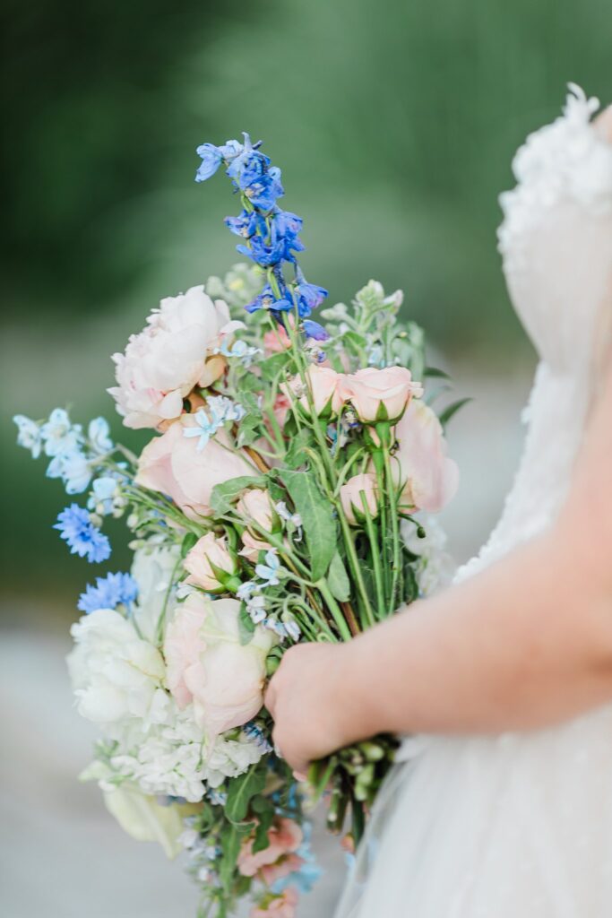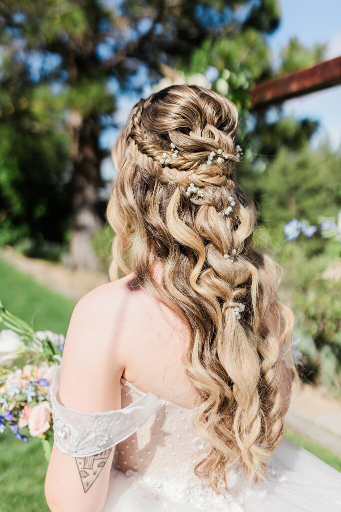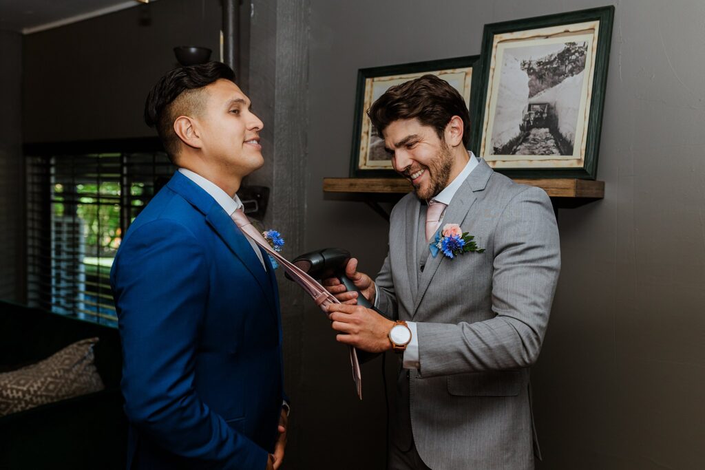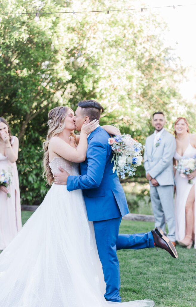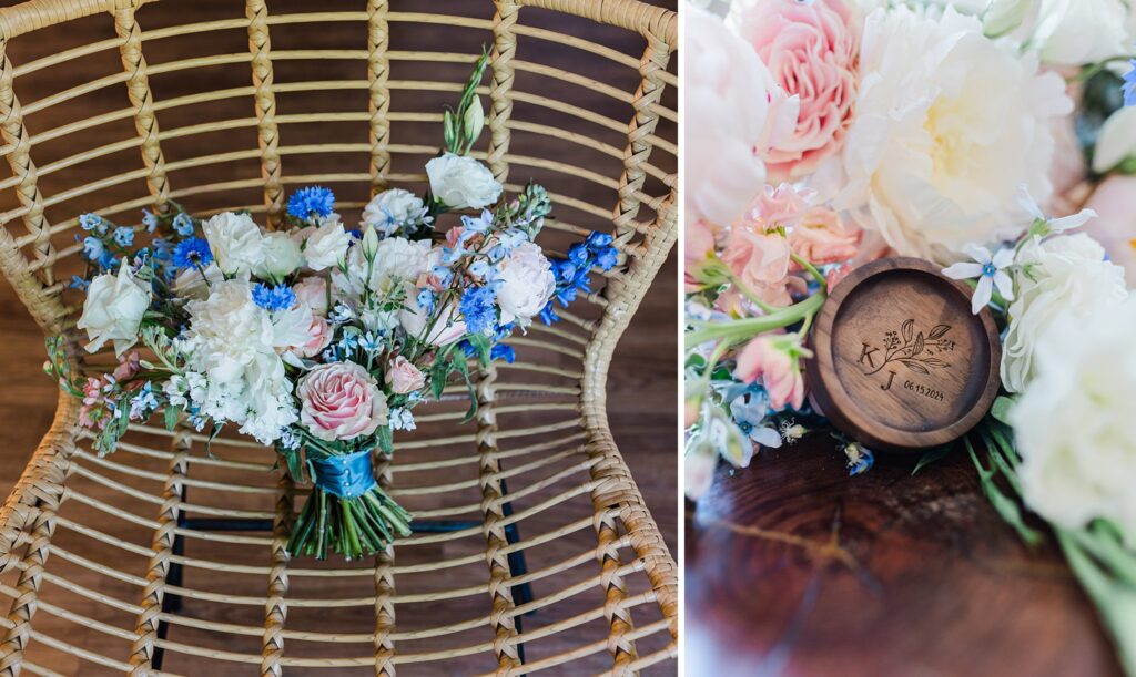 Katie wore a fairytale gown straight out of a boho bridal dream. Her hair—braided and adorned with baby’s breath—was pure magic. And let’s talk about Jose’s suit: bold blue with superhero pins hidden in the jacket lining?! I cannot. Everything about their look felt true to who they are—classic, fun, a little playful, and full of heart.