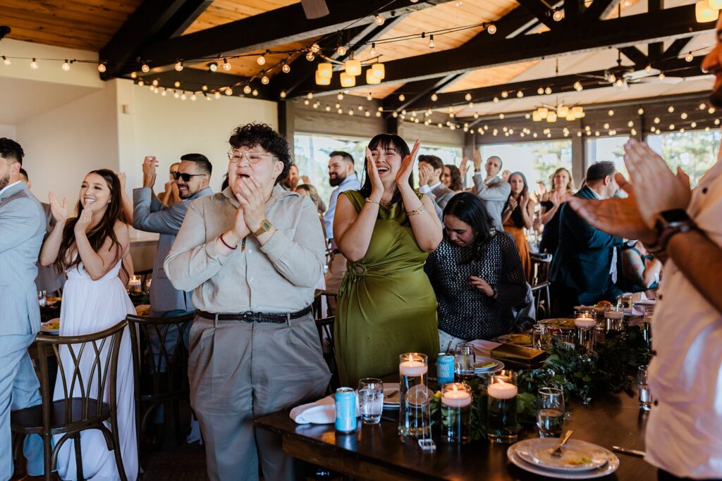 One of the best things about being a Tannenbaum wedding photographer is seeing how couples make the reception space totally their own—from tacos to twinkle lights. After private time together and a few golden hour portraits, the party kicked off with an Arctic Monkeys first dance, taco bar, and the kind of energy that keeps the dance floor full all night long. Lauren from Juniper Social Events knocked it out of the park (no surprise there—she’s not only a killer planner but also one of my besties, and I had the joy of photographing her Tahoe Blue Estate wedding too).
